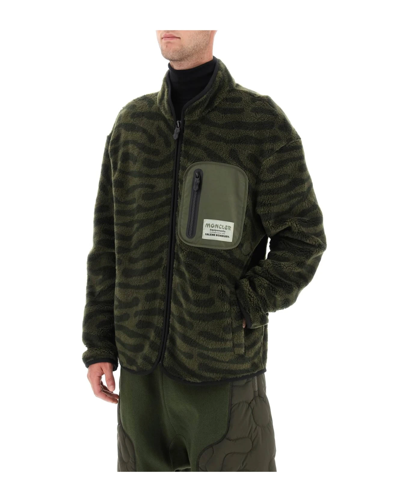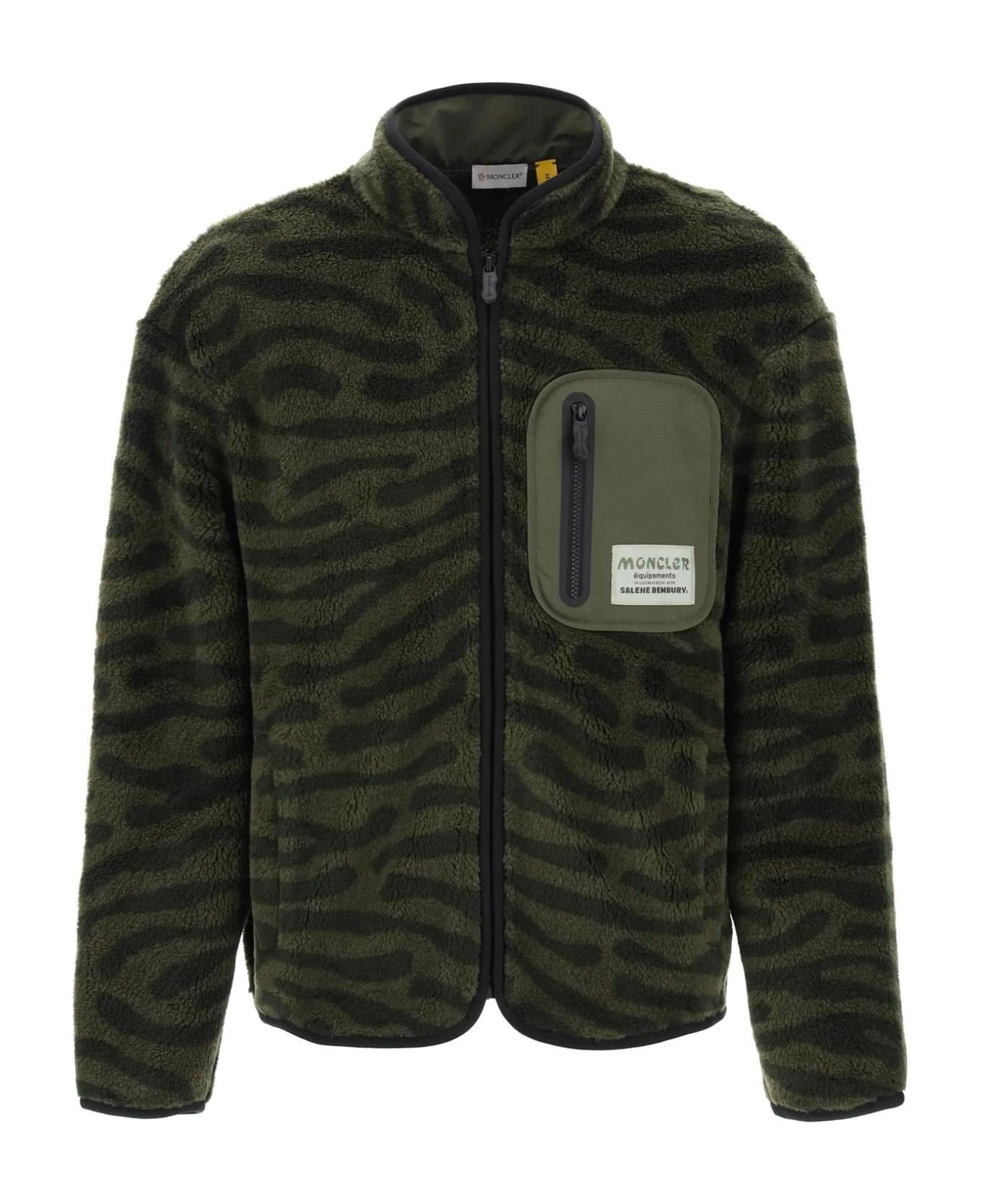 Sweatshirt from the Genius series Moncler x Salehe Bembury collection crafted in technical teddy-effect pile with tonal Fingerprint motif all-over. Design characterized by a nylon chest pocket enriched by Moncler x Salehe Bembury label featuring stand collar, front zipper fastening and side welt pockets with concealed zipper. Relaxed fit. The model is 187 cm tall and wears size L.