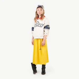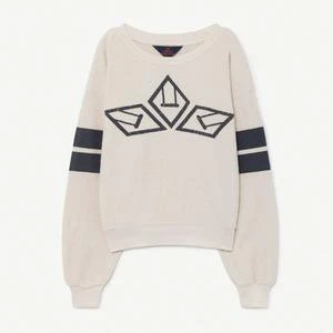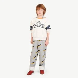 Kid’s casual pullover sweatshirt in a softly textured off-white cotton. Features contrast stripes on sleeves and oversized logo pattern on the front.