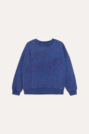 Fleece oversized sweatshirt in blue with “Los Amigos’print..