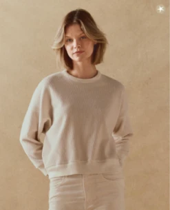 A fresh, fall take on the iconic collegiate sweatshirts, The Corduroy Teammate Sweatshirt features an all over corduroy fabric. Authentic vintage details like a half moon in the back collar, clean cuffs, and no distressing make this piece feel like the perfect headstock flea market find. Handcrafted locally in Los Angeles, the process ensures beauty and uniqueness so that no two pieces are alike.
