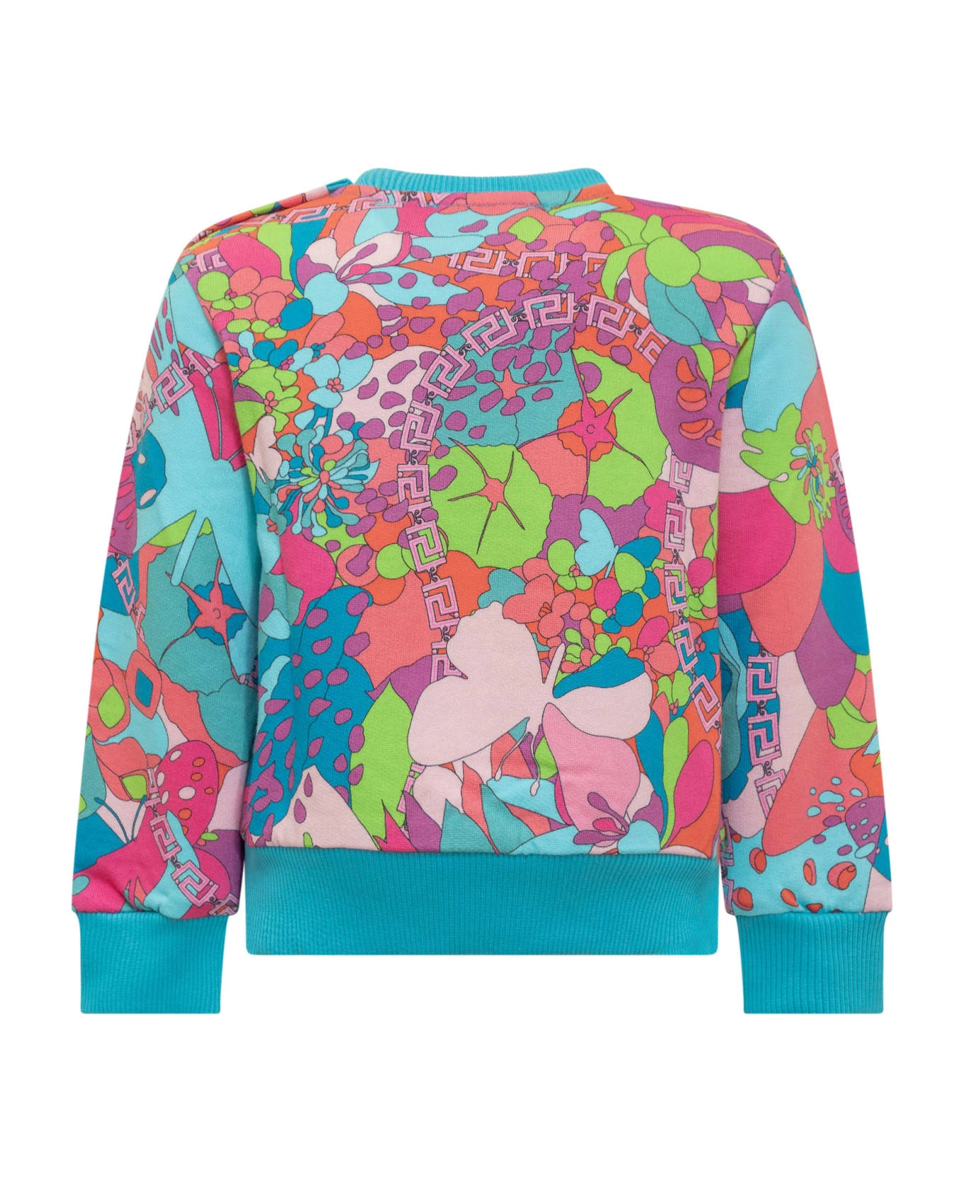 Long sleeved sweatshirt. Crew neck. Ribbed collar, hem and cuffs. Logo printed on the front. La Greca Flowers all-over pattern.
