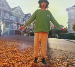 New from We Are Kids for Autumn/Winter 2021. Dropped shoulder organic cotton fleece sweatshirt in green. Features ‘Bonjour’ type on front.
