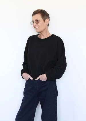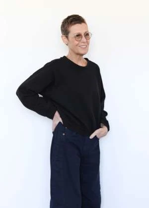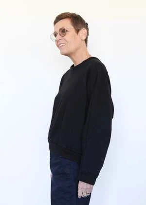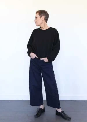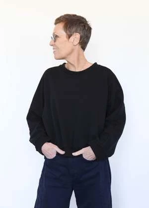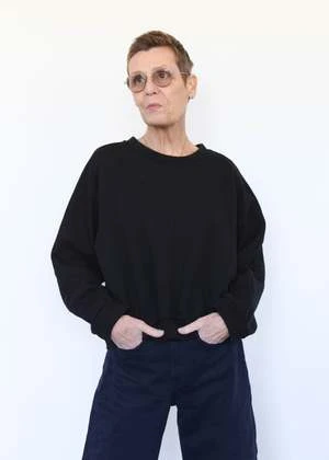 Boxy crew neck sweatshirt with our signature shoulder gusset seam detail in a slightly cropped length. Wide rib hem at bottom and rib cuff at sleeve. Done in our 100% USA grown and sewn organic cotton fleece fabric, ultra soft and fuzzy-inside.
