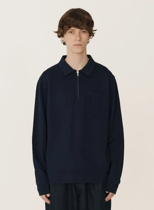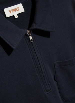 YMC Earth is our timeless collection of staples, sustainably constructed using natural, organic or recycled materials. Collared quarter-zip sweatshirt in a Portuguese organic loopback cotton, cut to a laid-back relaxed fit and fabric dyed.